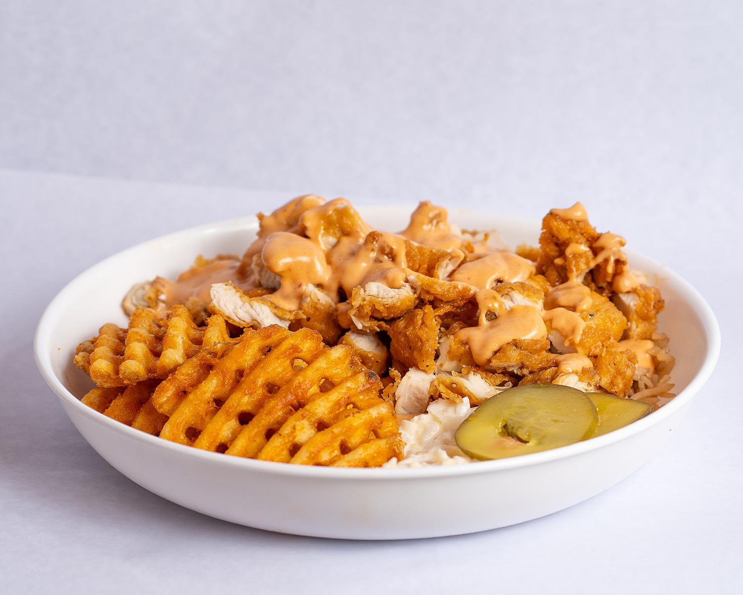 One Smash Burger, 2 Tenders and Waffle Fries w/YoYo Sauce
